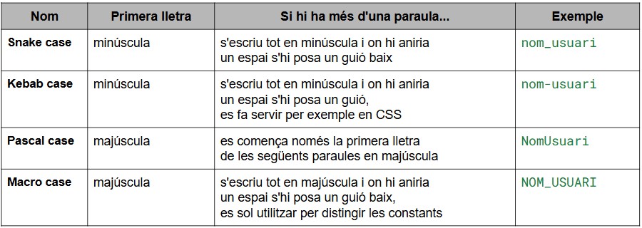 com minúscules. Més endavant es veurà el funcionament amb la declaració