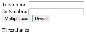 Crea un programa que faci la multiplicació o divisió de 2 nombres i que mostri el resultat a la pàgina web.